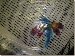 One of the things I learned from this scarf was how important the thickness of the dye is when using stencils. The body of the Dragonfly ran a little because it was not thick enough.